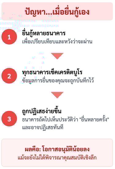 อยากกู้ซื้อบ้านหลังแรกแต่ไม่รู้จะเริ่มตรงไหน เพราะรายได้เรามีทั้งเงินเดือนและโบนัสปลายปี FundingHubTH ให้เรากรอกข้อมูลรายได้ทั้งหมดและภาระที่มีอยู่ ทีมงานช่วยดูรูปแบบรายได้ของเรา แล้วเลือกเฉพาะธนาคารที่เงื่อนไขเหมาะกับคนที่มีโบนัสก้อนใหญ่ปีละครั้ง จากนั้นก็ส่งเคสเข้าไปที่ธนาคารเหล่านั้น ทำให้ไม่เสียเวลาไปยื่นกับธนาคารที่เกณฑ์ไม่ตรง สุดท้ายได้ทั้งดอกเบี้ยดีและวงเงินพอสำหรับบ้านที่เล็งไว้